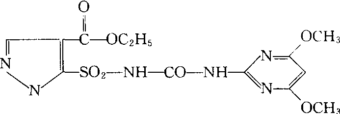 | 释义 | 吡嘧磺隆pyrazosulfuron-ethyl高活性内吸选择性水田磺酰脲类除草剂。又名吡磺隆,商品名草克星、NC-311。化学结构式: