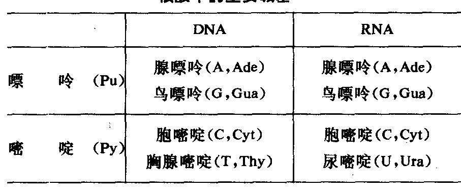 | 释义 | 含氮碱基handanjianji核苷酸与核酸的组分,是嘌呤和嘧啶这两类杂环母体的衍生物。DNA和RNA所含主要碱基有所不同,其重要区别是:胸腺嘧啶是DNA的主要嘧啶碱,而尿嘧啶是RNA的主要嘧啶碱。核酸中的主要碱基及符号见下表。