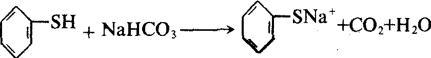 硫酚是芳香烃基与巯基相连的化合物,性质与酚相似,酸性比相应的酚强。苯硫酚可溶于碳酸氢钠溶液: