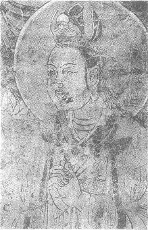 | 释义 | 听法图(男供养人像)壁画五代。甘肃省肃北蒙古族自治县五个庙石窟第3窟正壁东侧壁画。男供养人正值壮年,头戴花冠,面形椭圆,五官周正,耳尤大,内着交领衫,外披绿色袍,双手持供养花,目视远方,一派虔诚信佛的神态。作者运笔娴熟灵活,流畅的线条不失刚劲,特别是脸形和衣纹的刻画,一笔多折,富有韵律感。作者将人物的性格特征也表现得十分出色,其内心的善良、宽容通过那悠远的目光及至身体的形态皆表露出来,说明作者的肖像绘画水平已不仅仅是形似,而是上升到一个更高的层次。