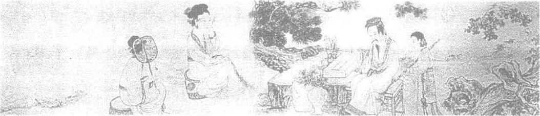 | 释义 | 吴伟《铁笛图》手卷,纸本,墨笔。此卷是根据元代著名诗人杨维桢的一段遗事为题材。据记载: 杨维桢游太湖时,得莫邪剑,于是命人铸了一支镆铘铁笛,长三尺左右,吹之奇音绝世。图中一戴巾细髯男子坐于庭院中,右手上提,似正按动手指,推敲曲谱。他面目安详,坐态舒适自然。他身旁的石案上摆设着书帙、笔筒、瓶、壶,点明了主人的身份。身旁一侍女,手持长笛,恭敬地站立着; 对面两名仕女前后列坐于圆凳上。其中一个拈花插发; 一位以扇掩面,神情似正渴望倾听主人的吹奏。背景上 一古树盘根错节,小竹丛生。画面右下角一段盘错苍劲的树根及 一怪异嶙峋的顽石,丰富了画面空间层次; 主人公头顶上点点松叶与之相呼应,显出古色古香的气氛。此图纯用白描勾勒。线条流丽秀润,舒展自如。恰到好处地表现出主人吟诗、弄笛的高雅气质,以及仕女们娇嫩的肌肤、柔软的衣裳。在衣领衣袖处施以淡墨晕染,发髻处浓墨晕染,显得墨色丰富。盘结扭曲的老树及顽石,用笔迅疾,且长短、浓淡、粗细变化丰富,显得苍劲有力,且富动感。显出作者既可精细刻画,又能豪爽纵放的画风。 吴伟 《铁笛图》 吴伟(1459~1508),字士英,又字次翁,号小仙,江夏(今武昌)人。孝宗授以“锦衣百户”,并赐印章,称他为“画状元”。后因人谗言,被迫归隐。他擅画人物、山水,成为明“江夏派”的创始人。 |