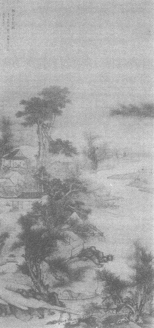 | 释义 | 吴宏柘溪草堂图轴清。吴宏绘。绢本设色。纵160.8厘米,横79.8厘米。江苏省南京博物院藏。吴宏见《吴宏寒泉疏树图页》条目。据题跋知,柘溪草堂位于宝应白马湖东岸树丛中的临水小村。画面上树木翁郁繁茂,点点红树夹杂其间,一座面湖倚岸而建的多重庭院掩映在树丛中。楼阁上,两人对坐倾谈,窗外为烟波迷离的湖面,远处的群山仅依稀见影,给人以深远之感。近岸处的苇丛被雾气化作一团。小河绕村而过,河水注入湖中,河上架有竹木板桥。水缓处静泊一带篷的渔舟。作者以疏密相间的笔墨和遒劲的笔触描绘出小村的清幽和宁静。以侧锋皴山石,中锋写林木、屋舍,再施水墨,形成自然的明暗向背,具有浓厚的写实风格。此图款署“金溪吴宏”。诗堂和裱边有查士标、梁清标、朱彝尊、程邃等人的题诗、题词。