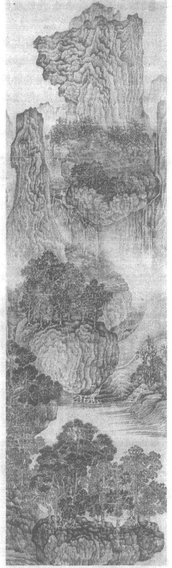 | 释义 | 吴彬岱舆图轴明。吴彬绘。绫本设色。纵148.1厘米,横48.7厘米。浙江省博物馆藏。吴彬(公元16—17世纪初),字文中、文仲,号枝庵发僧、枝隐庵主,福建蒲田人,流寓南京。万历间为中书舍人,历工部主事。工山水,善人物,尤擅佛像,不拘古人,自成一家,受到明神宗称赏,画入藏御府,外传甚少。传世作品有《十六应真卷》、《山阴道上图》、《层峦重嶂图》等。此图绘古木参天,巨岩嶒嶙,湖水荡荡。在通往深山的古道上,古寺相连,梵宫如林。远处奇峰连天,陡壁峥嵘,掩映在林木中成群的琼楼玉宇,富丽堂皇,庄严神圣,恍若仙境。图的右上角有篆书“岱舆图”三字。构图奇妙,设色典雅,石树水屋在作者别具一格的描绘下,苍健秀逸,超尘出俗,饶具雅趣。