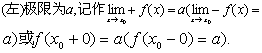 | 释义 | x→x0时函数的极限x→x0 shi hanshu de jixian设函数f (x)在点x0的某一空心邻域内有定义,若x以任何方式无限接近x0时,对应的函数值f (x)无限接近常数a,则a叫做函数f (x)当x趋于x0时的极限。更精确地说,就是: