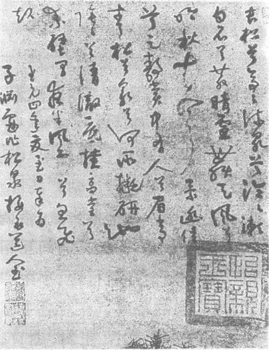 | 释义 | 吴镇行草书松泉图轴题画诗元。纸本。纵35厘米,横31.6厘米。江苏省南京博物院藏。吴镇(元至元十七年一元至正十四年,即公元1280—1354年),字仲圭,号梅花道人,常自署梅道人,又号梅沙弥,自题墓碑为梅花和尚之墓。魏唐(今浙江嘉兴)人。平生隐居不仕,浪迹江湖,工诗翰,书画名冠一时,草书学光,山水师巨然,墨竹宗文同,极负盛誉。与黄子久、王蒙、倪云林并称“元四大家”。明李日华《六研斋三笔》云:“梅道人书作藏真笔法,古雅有余。”明陶宗仪《书史会要》云:“仲圭草学光。”传世书迹有《渔父图卷》、《墨竹图卷》等。后人辑录他的诗和题跋编为《梅道人遗墨》一卷。吴镇身为元代四大画家之一,兼有诗、书、画三绝之誉,后世论其书的很少,原因是其书被其画名所掩。其书法也多见于题画。此幅即是为《松泉图轴》题画作诗:“长松兮亭亭,流泉兮泠泠。漱白石兮散晴雪,舞天风兮吟秋声。景幽佳兮足静赏,中有人兮眉常青。松兮泉兮何所拟,研池阴阴兮清澈底。挂高堂兮素壁间,夜半风雷兮忽飞起。”款署:“至元四年夏至日,奉为子渊戏作松泉。梅花道人书。”此书结字似怀素,奇侧变化,字体或大或小,笔画时粗时细,相间有致,章法错落浑成,行笔劲健有力,笔法流畅清逸,有秀雅苍劲之美感。