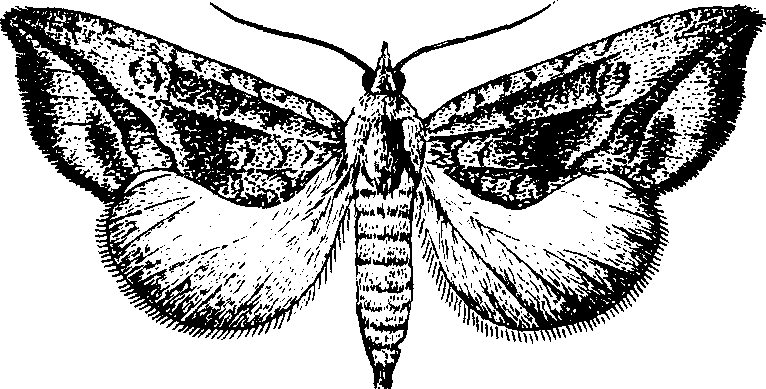 鸟嘴壶夜蛾 枯叶夜蛾 学名Adria tyrannus (Guenee)。头、胸、腹赭褐色,下唇须第三节似匙形。前翅枯叶色,内线从前缘向后缘内斜; 肾状纹粉绿色,自顶角至后缘有一明显褐色斜线; 前翅前缘拱形,顶角很尖。后翅杏黄色,翅外缘有一粗弧形黑斑,中室下角后方有一黑色肾形斑纹。翅展约105毫米,体长约40毫米。浙江黄岩年生2~3代。主要以幼虫越冬。华南成虫高峰期在9月中下旬; 四川9月下旬开始发生,10月中旬高峰,也较嘴壶夜蛾高峰期为早。成虫产卵在植物叶片的反面。幼龄幼虫有吐丝习性,静止时头部下垂,尾部高举,仅以三对发达的腹足着地,全体呈V字形,幼虫寄主植物有木防己,木通和十大功劳等。 彩肖金夜蛾 学名Plusiodonta caelonata Kollar。前翅淡红褐色,镶有金色斑; 外线双线,深褐色,较直; 肾状纹金色; 前翅外缘中部外曲成一不明显的钝角,后缘在臀角至中部间内削。后翅暗棕色,缘毛白色。翅展29~30毫米,体长13~15毫米。幼虫取食粉防己。在广州4、5月发生数量较多。末龄幼虫化蛹于枯枝落叶中。温度24℃时,卵期3天,幼虫期18天,蛹期13天,成虫寿命13.4天,一世代历期47.4天。 防治方法是: ❶山区开垦新果园,宜连片种植,便于管理 可减少为害。 ❷选育丰产、优质和果实成熟期与吸果夜蛾发生高峰期错开的果树品种。 ❸人工铲除或用除草剂防除幼虫野生寄主,以杜绝虫源。 ❹吸果夜蛾发生期间,除人工捕捉成虫外,可设置黄色荧光灯。黄光对吸果夜蛾有忌避作用。 ❺在果实将成熟前套以纸袋。套袋前要注意防治锈壁虱。 |
