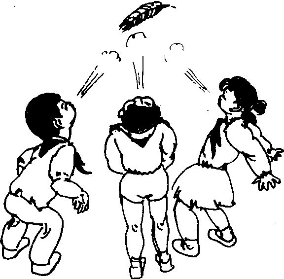 器材 鸡毛数根, 秒表1块。 场地 室内空地进行。 游戏方法 将学生分成若干组, 每组5—6人。预备时, 第一组同学进入教室中间, 老师发给同学一根鸡毛。游戏开始,一个同学将鸡毛抛起,这时教师开始计时,全组同学奋力吹气,使鸡毛不落地,鸡毛落地计时停止。各组以上述方法依次进行,最后以鸡毛飘浮时间最长为胜。 游戏规则 ❶只能用气吹鸡毛, 不能用手或其它东西来扇。 |