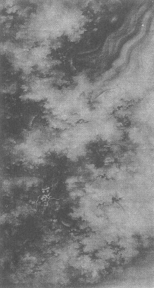 | 释义 | 周墨龙图轴清。周绘。绢本墨笔。纵131.5厘米,横74.6厘米。山东省青岛市博物馆藏。周(公元1649—1729年),字昆来,号嵩山,江苏南京人。善画龙马、花卉、人物。画龙尤负盛名,《国朝画徵录》载:“其画龙烘染云雾,几至百遍,深浅远近,蒸蒸霭霭,殊足悦目。”此图画一条墨龙穿行于云雾之中。通幅云气蒸腾,白云乌云绞在一起,墨龙头部隐现于阴云之中,怒目圆睁,嘴巴微张,形态凶猛。身体大部分被云层覆盖,若隐若现。整条龙做穿游翻云之态,颇有气势。云雾的烘染,借助于水墨层层渍染,表现出云海翻涌,更烘托出龙的威武凶猛。笔墨极见功力,墨色饱满,构图巧妙,立意新颖,层次分明,出神入化,虚无缥缈,独具匠心。