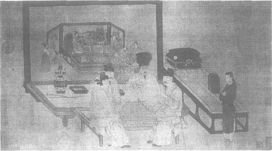 周文矩 《重屏会棋图》 周文矩(生卒不详),建康(今南京)人。南唐画院的翰林待诏。擅长画人物、车马、屋木、山川。所画仕女效法唐代周昉,变“浓丽”为清雅,不施朱粉,镂金佩玉,重在写神的传世作品 《宫中图》摹本,颇能反映这些特点。周文矩在当时颇受帝王赏识。 |