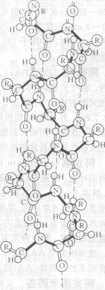 右手α-螺旋结构示意图 Ⓗ代表氢原子Ⓞ代表氧原子 |