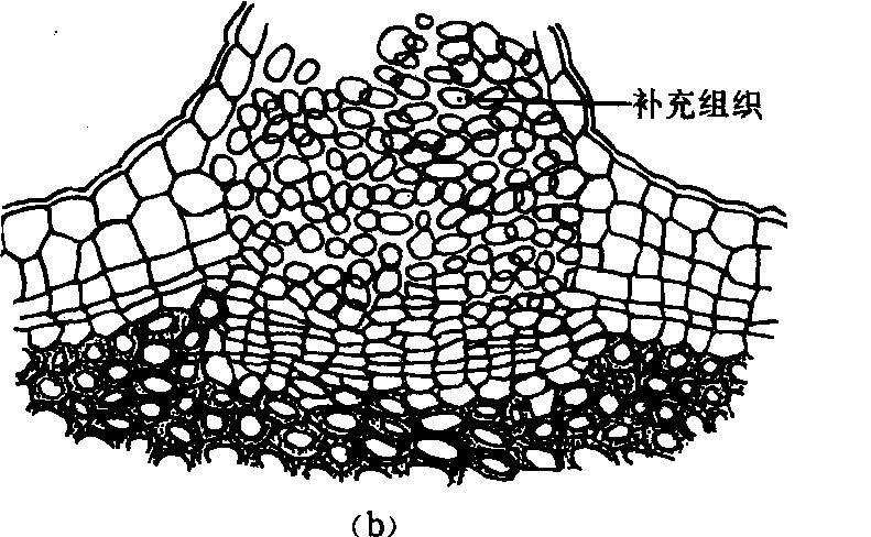 | 释义 | 周皮periderm由木栓层、木栓形成层和栓内层共同组成的复合组织,存在于具有次生增粗的茎、根外表(见茎)。植物体次生生长时,周皮代替表皮起保护作用。当植物体受伤时,其伤口可形成周皮,称为创伤周皮。落叶或落果的断痕处也可形成周皮。木栓形成层是次生分生组织。茎中最初的木栓形成层通常由近表皮层细胞经脱分化、重新出现分裂能力而形成,有的植物由表皮或更深处的薄壁细胞(皮层或韧皮部),或由表皮和皮层共同发生。根的木栓形成层通常起源于中柱鞘。木栓形成层的分裂活动,向外产生木栓层,向内产生栓内层。木栓层是次生保护组织。木栓层的细胞横切面为长方形(切线壁较长),切线切面呈多角形。细胞排列紧密,无细胞间隙,细胞壁栓化,原生质体解体,细胞腔充满空气,或含有晶体、树脂,从而形成不透水、绝缘、隔热、耐腐蚀等特性,对植物体有良好的保护作用。栓内层为薄壁细胞所组成,通常具1至数层,细胞排列整齐。有的植物栓内层含有叶绿体或各种贮藏物质(见图)。