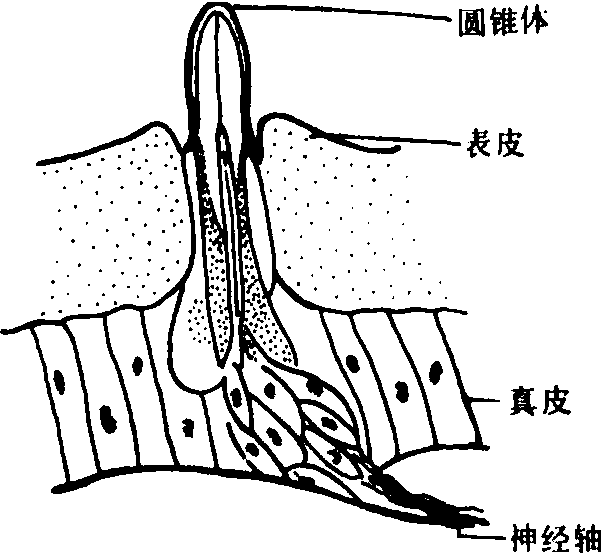 | 释义 | 味觉器官taste receptor感受化学物质刺激的器官。蜜蜂的主要味觉器官是突出于表皮的锥形感觉器,表面有小孔,下端有三四条神经(见图),位于口器、触角和前足跗节上。它们对浓度低于2%的糖溶液无刺激反应,但能区分出4%和5%的不同糖浓度。对浓度较高的糖溶液吸取量较大。