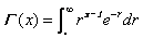 是数学上的一种特殊函数,能用来表示许多定积分,但Г函数不能独自构成解的主体,它通常与其它有关的函数一起出现。Г函数的一种特殊情形是阶乘n!=1·2·3·……n,它只对正整数n有定义。对于大的n值,n!=n/en(2πn)1/2。当n取非整数时,它可以看作是阶乘的某种插值,并由定积分Γ定义。这个定义可用于所有带正实部的复数值x。当n=1,2,3,…时,г(n+1)的值和n!相等。г函数具有如下性质:(1)Γ在除点x=m(m=0,1,2,…)外的复数x平面中,是一个正则函数,因为若x趋近于—m时,[(-1)mm! (x + m)]-1趋于无穷,故г函数也趋向于无穷;(5)г(1)=O!=1,г(1/2)=π1/2。г函数在数学分析、概率论中有广泛的应用。