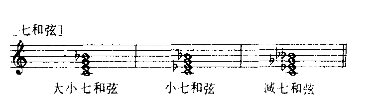 | 释义 | 和弦的种类与性质根据3度叠置原则构成的和弦可分为如下几种:由3个音组成的称为三和弦;4个音组成的称为七和弦;5个音组成的称为九和弦;6个音组成的称为十一和弦;7个音组成的称为十三和弦。其中常用的是前3种各和弦中的最低音称为根音,上方各音按与根音的音程关系分别称为3音、5音、7音、9音等。根据和弦音之间音程性质的不同,三和弦又可分为4种:大三和弦(大3度及纯5度)、小三和弦(小3度及纯5度)、减三和弦(小3度及减5度)与增三和弦(大3度及增5度);七和弦可分为7种:大小七和弦即属七和弦(大二和弦加小7度)、小七和弦(小三和弦加小7度)、减七和弦(减三和弦加减7度)、半减七和弦(减三和弦加小7度)、大七和弦(大三和弦加大7度)、小大七和弦(小三和弦加大7度)与增大七和弦(增三和弦加大7度);九和弦一般在属七和弦上方添加9度音构成,可分为大九和弦(属七和弦加大9度)与九小和弦(属七和弦加小9度)两种。上述各类和弦中以大、小三和弦与七和弦中的前3类及属七和弦最为常见,其他的运用较少。