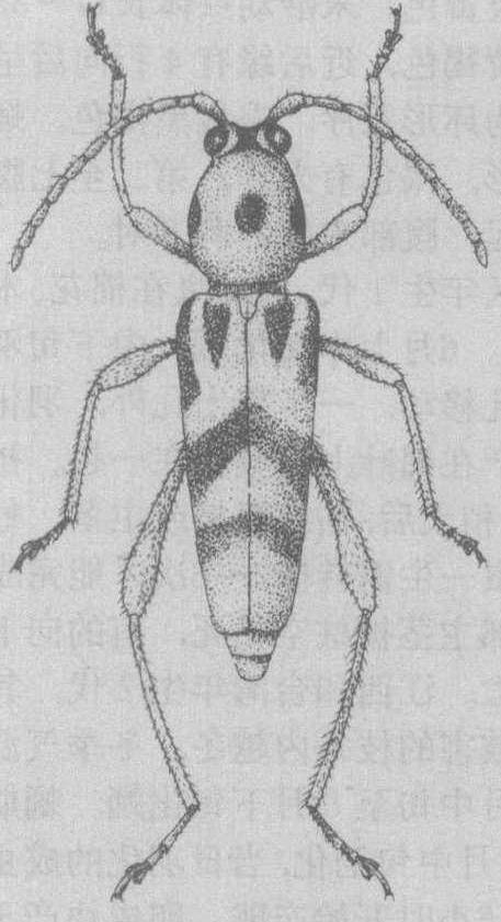 咖啡锦天牛 学名Acalolepta cervina (Hope)。分布于亚洲南部、朝鲜、日本及中国西南部。寄主植物有咖啡、柚木、水团花、醉鱼草等10多种。幼虫钻蛀咖啡树干基部呈螺旋状伤痕,使受害部上方枯死。成虫体长15~27毫米,棕栗色,被深褐色丝光绒毛,触角较体为长,前胸近方形,背板光滑,鞘翅基部具刻点。幼虫前胸背板中后部具凸字形突起盾片,盾片的中前方由多数褐色细颗粒突起围成不同形状的圈斑,腹部各节步泡突具有带小刺的乳头状突起,有些突起连成线形。在云南省西南部年生1代。以幼虫在树干内越冬。3~5月化蛹。4~6月出现成虫。6月上旬为产卵盛期。卵期6~8天。成虫寿命10~37天。幼虫期288天。成虫产卵于树干离地面1米以内表皮下。幼虫在皮层下钻蛀隧道呈螺旋状,常连续3~4圈,使树干输导组织受破坏,以致植株上部枯死。 咖啡绉胸天牛 学名Plocaederus obesus Gahan。分布于缅甸、泰国、印度及中国广东、广西、云南、台湾等省区。寄主植物有咖啡、杧果、木棉、板栗、腰果等10多种,在海南普遍为害腰果。幼虫钻蛀树干近基部处,食害树皮下组织。成虫体长28~43毫米,红褐色,密被棕褐色短毛。触角红褐色,雄虫触角超过体长约1/2,雌虫则与体长相等或略短,第五至十节端部外侧呈刺状突。幼虫前胸背板中部两侧具两个半圆形褐色斑块,中部后方中央呈盾形凸出,具后背板褶。腹节步泡突呈横列的疣,疣的上面具细刺突。在中国海南年生1代。以幼虫越冬。4~7月成虫出现。产卵于树干基部表皮裂缝中。幼虫在皮下蛀食,并排出大量木屑和虫粪。末龄幼虫在木质部钻蛀成坑道,分泌白磁质,作扁椭圆形茧而化蛹。蛹期20~25天,羽化后成虫在茧中停留15~30天后夜出活动。 树干基部抹沥青可防止灭字脊虎天牛成虫产卵;用对硫磷稀释液喷树干基部可毒杀旋皮天牛幼虫; 咖啡绉胸天牛幼虫为害的树干基部,有大量木屑排出树干外部,可翻开附近树皮,消灭其幼虫。此外,可结合修剪进行人工捕杀。 |