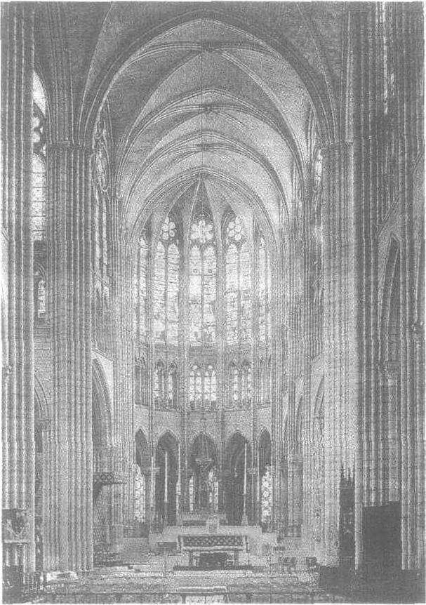 圣德尼教堂内景(法国) 中世纪后期,由于城镇的重新兴起,市民阶层一天天壮大起来。他们成了新教堂和美术的赞助者。特别是13、14世纪的时候,产生了将拯救罪孽深重的人类的救星与神合二为 一的神秘主义,因而基督教信仰有所加强,并深入到每个人的心中。为适应这种需要,制作出了许多偶像。无论是教堂内部的巨大雕像和多翼祭坛,还是私人家中的象牙小雕像和小幅图画,都表现的是基督、圣母子和圣告图。其中圣母子像显现出比神的母亲或天上的女王更近乎人世间母子之间亲昵的姿态,还产生了抱着我子的遗骸而悲泣的《毕埃达》这一全新主题的作品。如果基督被画成骨瘦如柴的样子,身上有鞭打的痕迹,钉过的痕迹,那么他就是作为极端 《苦难的人》而出现的。总之,万能的基督这时变成了慈爱的基督、人之子的基督,圣母、天使也都更加接近人类。另一方面,经院神学建立起了庞大的信仰体系。大伽蓝坚固的构造,就是反映普遍化的秩序的 一面镜子,具有统 一性和数学的和谐,有向往着高高的天国之意。 由于在哥特式教堂内几乎没有适合描绘壁画的壁面,而代替它的是许多的窗户,因而烧绘玻璃十分发达。它们不仅仅是壁画的代用品,而且由透过色玻璃的光而产生出了全新的空间性格。用铅丝将窗户上各种各样颜色(红和蓝为主,之后有黄、绿、紫、茶)的玻璃连起来,表现出一定形象的做法,早在10、11世纪时就已经零星地出现了,它从圣德尼修道院、夏特尔大教堂开始进而被推广到法国、德国的许多教堂。这些窗玻璃画,无论早晨还是黄昏随着太阳的移动而变化,显现出一种哥特式独特的美。 在意大利,则看不到纯粹的哥特式建筑,即带有许多细长的窗户的教堂,因此依然是画壁画,如出现了乔托(还有雕刻家毕沙诺父子)所作的被称作“前文艺复兴” 的许多作品。