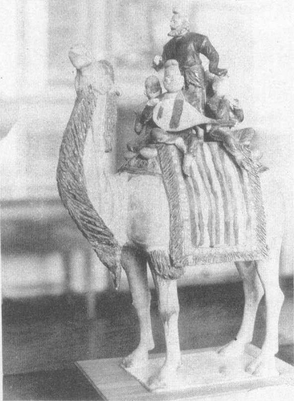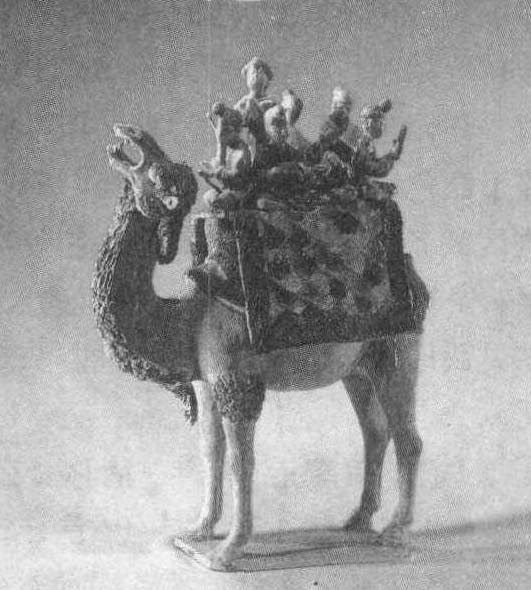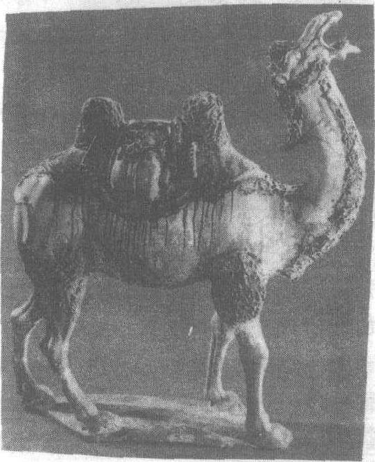 三彩骆驼载乐俑 北朝北齐范粹墓出土的带彩陶器和带釉陶俑,是唐三彩的前身。唐三彩盛于初唐到盛唐。辽代三彩也很有特色,以后逐渐衰落。 唐三彩创烧于唐代的一种低温铅釉的彩釉陶器。因此种陶器较常使用黄、绿、褐等色釉,在器皿上构成斑点、花朵或几何纹等色釉装饰,所以叫做三彩。“三彩”并非专指三种色彩,而意谓多彩,黄、绿、褐色外尚有蓝、白等色。唐三彩用白粘土制胎,经千度左右的高温烧成陶胎,施以彩色铅釉后再经900度左右的低温焙烧而成,因其用料精细,制作规整,故不变形、不裂缝、不脱釉。唐三彩主要作明器用。唐时厚葬之风盛行,“王公百官,竞为厚葬,偶人像马雕饰如生……风俗流成,也下兼士庶”。( 《唐会要》) 因此,以人物、动物为题材的三彩雕塑最为动人,其中马和骆驼最多,器形高大,比例准确,线条流畅,多以夸张的动势表现其神骏强健和坚毅负重。人物则根据其社会地位和等级,刻画出不同的性格和特征。贵妇面部丰腴,梳各式发髻,着彩缬服装; 文官彬彬有礼; 武官勇猛英俊; 胡俑高鼻深目; 天神怒目凶狠。三彩也有不少是生活用器,如壶、罐、瓶、尊、碗、盘及文房用具。唐三彩的制作地点,分布在长安和洛阳两地。在长安的称西窑,在洛阳的称东窑。唐三彩在当时还作为珍贵的物品远销海外,包括意大利、埃及、伊朗、伊拉克和日本、朝鲜、印尼等欧亚国家 唐三彩Tangsancai唐代陶器和陶俑上的一种特殊釉色。主要呈黄、绿、蓝三种色调,因此得名。上有这种特殊釉色的陶器也称作唐三彩。现在我们知道这种釉色的呈色剂是各种金属氧化物,涂氧化铜得绿色,氧化锑得黄色,氧化钴得蓝色,此外釉色还有白、褐、酱紫等。三彩陶器就是先将陶器烧至1 000℃以上,然后在陶器坯胎上涂上不同金属原料色釉,再烧制而成。到目前,全国各地出土的三彩陶器已相当多,造型有骆驼、骏马、乐舞俑,形态生动逼真,色彩艳丽,还有大量仿金属器物,多是用作明器(陪葬器物)。唐三彩是唐代陶瓷工艺方面的新成就,表明了唐代陶瓷手工业已达到很高水平。唐三彩的制造自辽代以后逐渐衰落。 唐三彩Tangsancai唐代彩色釉陶的通称,其特点是彩色釉鲜艳漂亮,流动自然,互相渗透,形成了多彩变化的效果。它是一种低温釉陶器,用白色偏浅黄或浅红的粘土作胎,用含铜、铁、钴、锰等元素的矿物作釉料的着色剂,在釉里加入很多量的炼铅熔渣和铅灰作助熔剂,经过约800℃的温度烧制而成。釉色有深绿、浅绿、翠绿、蓝、黄、白、赭、褐等多种色彩。由于三彩陶釉中含有大量的铅,用铅的氧化物作为熔剂,可降低釉料的熔融温度。在窑炉中烧成时,各种色釉互相扩散流动,形成斑驳绮丽的色彩变化。釉面光亮平滑,更突出了色彩的艳丽。唐代盛行三彩釉陶器,主要用于随葬作明器。唐三彩器皿有:盘、碗、瓶、尊、罐、壶等造型;还有亭台、楼阁、小屋、舟船以及人物和动物雕塑,包括造型复杂的骆驼背上的乐队等,题材广泛,形象生动,造型独具风格。唐三彩对后来的陶瓷釉和彩都有较大的影响,唐以后的低温色釉和釉上彩装饰工艺,大都受到唐三彩的影响和启示发展起来的。唐三彩实际是由很多色彩组成的,因为多以黄、绿、白为主,所以称之为三彩。