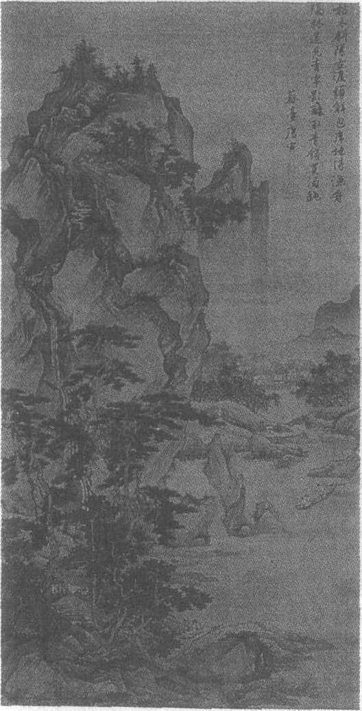 | 释义 | 唐寅渡头帘影图轴明。唐寅(见《唐寅湖山一览图轴》条目)绘。绢本设色。纵170.3厘米,横90.3厘米。上海博物馆藏。此图绘山村河旁旅人等待渡河的情景。左面山峰高耸,山峦重叠雄伟,绿树点缀其间。高高的瀑流顺着陡峭的山岩曲折而下,飞瀑如练,直落千仞。山脚下松柏、杂树葱绿茂密,错落有致。在松林深处有茅屋草舍,人影闪现其中。远处隐露一处小村,房屋数间,一樵夫担柴从山中归来。河中,渡船载客而来,岸边三位待渡的游客席地而坐,遥望对岸的酒肆,仿佛正在谈论那里的美味佳肴。构图严谨,造型真实生动。山石的勾皴刚劲峭拔,山峦的形状转折多姿,用笔精工,笔法灵活。设色明丽典雅,富有生活气息。此图是唐寅中年时期的佳作。右上题诗:“枯木斜阳古渡头,解包席地待渔舟。隔林遥见青帘影,醵取青钱买酒瓯。”款署“苏台唐寅”。钤<南京解元>朱文长方印、<六如居士>朱文方印。此图曾由近人黄砚山收藏。