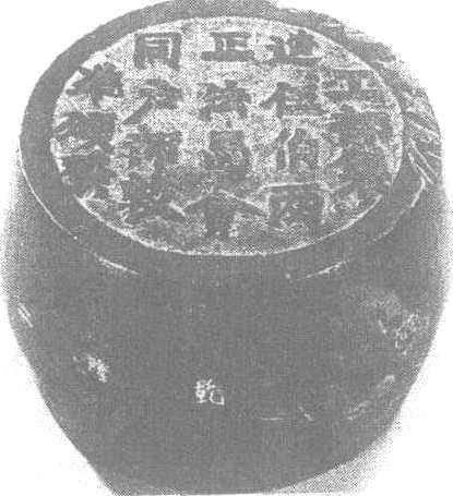 | 释义 | “伍佰两”铜砝码清。通高11.8厘米,面径16.2厘米。实测重18700克。北京故宫博物院藏。砝码用铜铸成,作圆鼓状,边沿略有磨损,正面铸楷书阳文“工部制造伍百两正法马,会同户部较准颁发。”腹围环刻楷书阴文“乾隆二十九年十二月造”。“乾隆二十九年”即公元1764年。“工部”,官署名,清指农工商部。“户部”,官署名,清指民政部和财政部。按自铭折算每两合37.4克,每市斤合598.4克。
