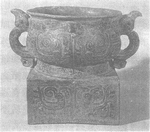 | 释义 | “伯”方座铜簋西周。古代盛食器,礼器。通高24厘米,口径22.2厘米。1982年江苏省丹徒母子墩出土。镇江博物馆藏。此簋鸟耳,膨腹,低圈足,下附方座。颈部饰一周蚕纹,间以兽首。腹部有相对顾首凤纹。圈足亦饰蚕纹。方座顶面四隅饰饕餮纹,侧有顾首凤纹。器内底铸有铭文“伯作宝彝”五字。此器在江南甚罕见,其纹饰绚丽,器壁也特别薄,有的地方仅厚约零点一厘米。