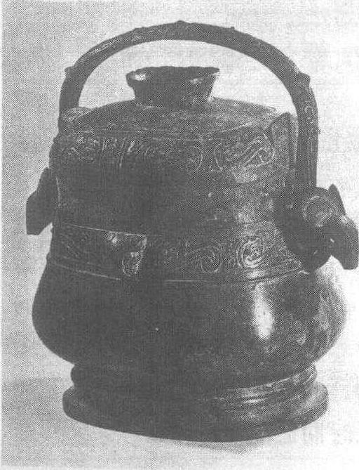| 释义 | “作宝尊彝”铜卣西周。盛酒器。通梁高24厘米,口径13.5×10.5厘米,腹深12.7厘米。重3公斤。1978年陕西省扶风县齐家村出土。陕西省周原文物管理所藏。此卣有盖,体作低矮,垂腹,圈足。盖上有喇叭状提手,盖面两侧铸有“犄角”,提梁的两端呈羊首形。盖沿及口沿下均饰以云雷纹填地的垂冠回首夔龙纹带。口沿下增饰浮雕羊首。提梁饰蝉纹,圈足有两道弦纹。盖内及器底对铭,各铸铭文“作宝尊彝”四字。此器极富时代特征,与丰卣一样是西周昭、穆时期的典型器物。