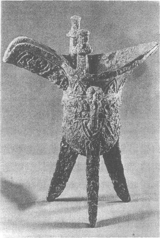 | 释义 | “作彝”铜爵西周。古代饮酒器。通高21厘米,流至尾长17厘米,口宽7.8厘米,腹深10.3厘米。重0.75公斤。1974年陕西省岐山县贺家村出土。陕西省文物管理委员会藏。此爵宽流,菌状双柱,短尾,细鋬,圜底,三棱足。腹部饰呈浮雕状的双身共首龙纹,上饰仰叶,下有垂叶,流下作垂冠回首鸟纹。柱上铸有铭文“作彝”二字。此器结构恰当得体,装饰极见匠心,为西周早期常见的型式。