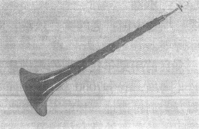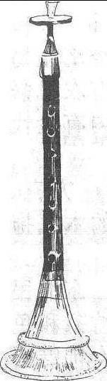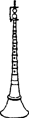唢呐 唢呐吹奏乐器,又名喇叭、苏尔奈、海笛等。金元时传入中国。分为6种(海笛、小唢呐、中唢呐、大唢呐、柏木杆唢呐、加键唢呐)。由5部分(哨、芯子、气盘、杆、铜碗)组成。杆为木制空心圆锥体,上开8孔(前7后1),杆长18~31 cm,下口内径1.8~2.6 cm,下口外径2.4~3.4 cm。以苇制哨子(长13~14 mm),插于芯子顶端。唢呐杆下端接喇叭形铜碗,碗高7~14 cm,上口内径2.4~3.3 cm,下口直径8.6~14.4 cm。 唢呐吹奏乐器。又名喇叭或大笛。小者称海笛、锡笛、铜笛。明正德(1506—1521)以来已在国内普遍使用。为鲁西南、鲁北等地的鼓吹乐中的重要乐器。明王圻《三才图会》:“锁呐(唢呐)其制如喇叭,七孔,首尾以铜为之,管则用木,不知起于何时代,当是军中之乐也,今民间多用之”。明王磬《王西楼先生乐府·朝天子》词:“喇叭、唢呐、曲儿小,腔儿大,……。”其形制是在椎形木管上开八个按音孔(前七后一),木管上端装一细铜管,铜管上端套一苇制哨子,下端承接一个铜制喇叭口。唢呐音色高吭明亮,技巧丰富多采,能吹奏滑音、揉音、气顶音、气塌音、笑音、箫音、花舌音、变色音等。除用于合奏、独奏外,还用于戏曲、歌舞伴奏。在民间,每逢喜庆节日,吹打乐队和锣鼓乐队中,大都用唢呐,是民间运用最广泛的乐器之一。经过改革后的唢呐,有高音、中音、低音三种,有的还使用了音键,扩大了音域。目前在乐队中使用的唢呐,高音唢呐音域为#f1—d3,中音唢呐音域为d—d2,低音唢呐为A—d2。 |