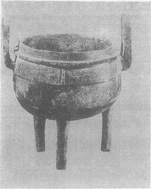 | 释义 | “叔”铜鼎西周。炊器,礼器。通高22厘米,口径13.5厘米,腹深14.5厘米。重3.2公斤。1971年陕西省宝鸡市茹家庄出土。陕西省宝鸡市博物馆藏。此鼎失盖,附耳,腹略膨,三柱足。口沿下有凸棱一周,棱下饰列旗饕餮纹带。器内壁铸铭文“叔作宝尊彝”五字。此器造型和纹饰都呈现出西周早期的特征,附耳也和晚期向外撇的作法有别,可以确定为西周早期之物。这就将附耳鼎的出现时间提前了数百年。