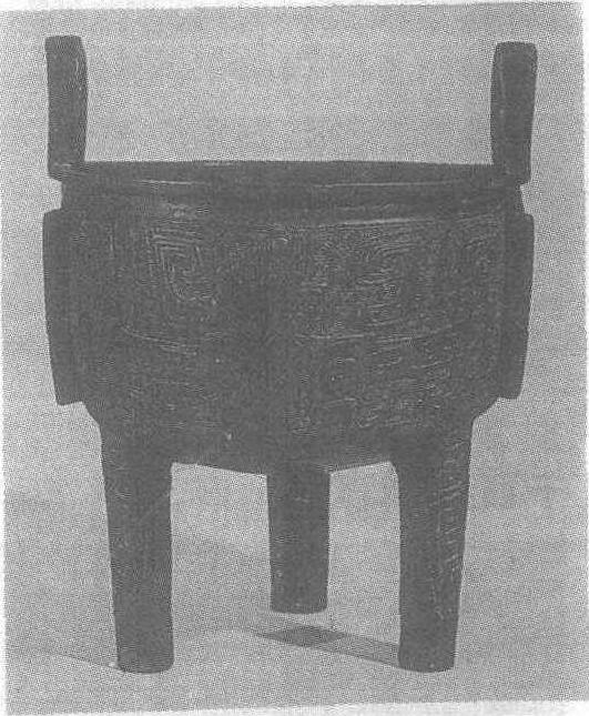 商。炊煮器,礼器。通耳高23.5厘米,深11厘米,口径18.4厘米,腹围61厘米。台北故宫博物院藏。圆形鼎,圜腹,口沿上有对称立耳,腹下有圆柱状三足。腹部有六棱,其间以云雷纹为地饰有饕餮纹。圆柱形三足上饰有蝉纹。口内铸有“史”字铭文。