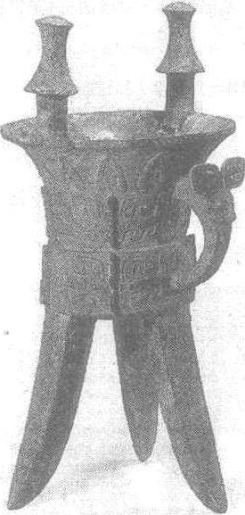 “后母”铜斝商。古代温酒器。通高66.5厘米,口径30.7厘米。1976年河南省安阳市殷墟妇好墓出土。北京中国历史博物馆藏。此斝侈口,沿上有伞形柱一对。下腹呈圆柱形,底近平。三足外撇,呈三棱形。柱帽及口沿下饰蕉叶纹。腹上下均饰饕餮纹,有三道扉棱。鋬上有兽首。足饰蕉叶纹。口沿下内壁有铭文“后母”三字。此器出自妇好墓,有两件成对。“后母”见“母’铜方壶">‘后母’铜方壶”条目。