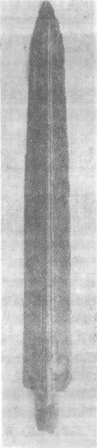 | 释义 | “吴王”铜剑春秋。剑身长30厘米,宽3—4厘米。1983年山东省沂水县出土。沂水县文物管理站藏。此剑通体呈墨绿色,光滑锃亮,剑刃锋利。剑身无饰纹,中部起凸脊。脊高0.4厘米,底宽0.9厘米,顶宽0.4厘米,延伸到茎上1厘米。断茎残存3厘米,呈扁圆形,宽1.9厘米,中厚0.8厘米。剑身两侧有阴刻篆书铭文两行,计16字, “工𫋞(攻)王乍(作)元巳(祀)用□乂(治也)江之台(涘)北南西行“此器从铭文格式来看,应属春秋时期之物。伴出有铜𫔺一件、戈一件、箭镞五个和陶器等。