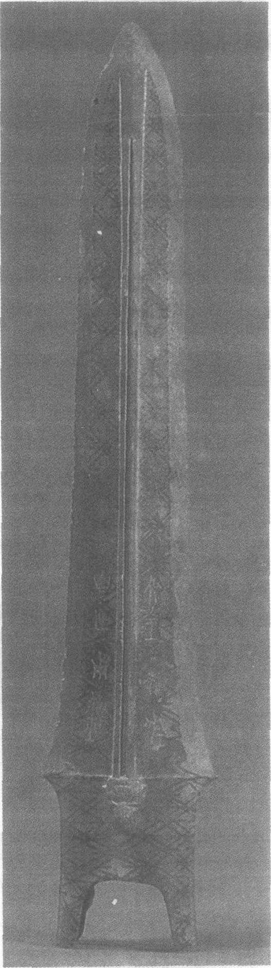 | 释义 | “吴王夫差”错金铜矛春秋。长29.5厘米,宽3厘米。1983年湖北省江陵马山出土。湖北省博物馆藏。铜矛是古代兵器中的一种“刺兵”,用于刺杀。此矛体长,锋部呈弧线三角形。中脊凸起,脊中心线为一凹槽沟。骹短中空,下端作鱼尾形,用以插柲,骹首两侧有对称凹口。矛身两面中脊和骹部饰有黑色的米字形纹。矛身一面有两行错金铭文:“吴王夫差,自乍(作)用鈼。”吴王夫差兵器,已发现的以剑为多,矛仅此一器。吴差,吴国君,阖闾之子。曾在夫椒败越兵,破越都。继开邗沟,以图向北扩展,在艾陵大败齐兵。公元前482年,在黄池会盟诸侯,与晋争霸,越乘虚攻吴,继而灭吴。夫差自杀。