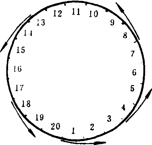 场地 据学生的人数在篮球场上画一直径为10—14米的圆圈。 游戏方法 参加游戏的学生面对圆心站在圆圈线上。以一个学生为起点,依次连续报数,个人记住自己的号码。教师喊号后,比赛开始被叫到号码的学生立即沿逆时针方向绕圈奔跑,教师连续叫号,每一个被叫到号码的学生在绕圈跑的同时,争取追上自己前面的同学或尽快跑回自己的位置。如此连续进行。 游戏规则 ❶连续叫号时,应间隔2—3个数字。 ❷站错位置和被追上的学生应被罚做俯卧撑或蹲起。 |