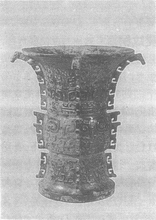 | 释义 | “商”铜尊西周。高30.4厘米,口径23.6厘米,腹深22.9厘米。重5.8公斤。1976年陕西省扶风庄白出土。陕西周原扶风文管所藏。圆尊侈口,腹稍鼓。装饰花纹采用浮雕手法,无地纹,口沿下饰蕉叶纹,颈饰夔纹,腹与圈足均饰饕餮纹。器的四面皆出透雕扉棱,增强了器物的高大与稳重,是西周早期青铜器工艺中的精美之作。腹部内底铸有铭文五行,共30字。大意是,某年五月丁亥这天,帝后赏赐给商的妻子庚姬贝30朋,𫑚丝20寽,商作了这件尊,祭祀亡父日丁。