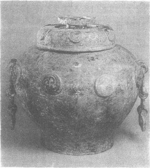 | 释义 | “大孟姬”铜盥缶春秋。通高46厘米,口径26厘米。1955年安徽省寿县蔡侯墓出土。北京中国历史博物馆藏。此器有盖,敛口,膨腹,圈足。兽首形双耳衔有提环。盖中间有六柱圆顶,四周突起六个涡纹。器身亦突起八个涡纹。通体纹饰嵌赤铜。口内沿铸有铭文一行十字:“蔡侯缚作大孟姬盥缶”。说明此器是蔡侯缚(即蔡成侯,名朔。朔、缚古音通)为其长女大孟姬出嫁而作的。蔡侯卢铭谓大孟姬“敬配吴王”,因知大孟姬为吴王配偶。然此器何以出于蔡侯墓,原因未详。