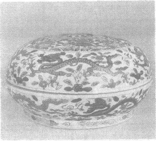 | 释义 | “大明万历年制”五彩镂空莲花纹瓷盖盒明。高11.3厘米,口径13.3厘米。上海博物馆藏。五彩瓷器创烧于明宣德时期,但传世文物极为罕见。万历时期五彩瓷器的生产量很大,其数量之多,质量之精,堪称空前绝后。所谓万历五彩是指釉下青花和釉上彩色相结合的青花五彩瓷器。真正使用釉上蓝彩是在清康熙以后。此圆盒带盖,盒盖有镂空纹饰并绘荷塘和行龙四条。器身亦彩绘行龙。全器纹饰繁复,红、黄、绿、青花四色搭配艳丽。盒底青花双圈内有“大明万历年制”双直楷书款。
