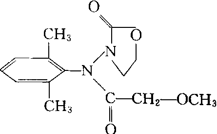 | 释义 | 噁唑烷酮oxadixyl又称噁酰胺、噁霜灵。噁唑烷酮类杀菌剂。化学名称:2-甲氧基-N-(2-氧代-1,3-噁唑烷-3-基)-2,6 -二甲基乙酰替苯胺。化学结构式如下。原药无色结晶.溶于水(3 400 mg/kg)及极性溶剂中,不挥发,辛醇/水分配系数极低,不易在动物组织中积累,化学稳定,药液浓度20 mg/kg,在弱酸、弱碱、中性(pH5、pH9、pH7)及室温下,对光稳定。内吸性杀菌剂,主要用于防治由霜霉菌、白锈菌、疫霉菌、腐霉菌引起的病害,具有保护、治疗和铲除作用。对子囊菌,担子菌和半知菌均无效。药剂在植物叶片的渗透和内吸性能极好,可通过根、茎、叶,向顶、向基转移。它对病菌的作用机制与苯基酰胺类杀菌剂(如甲霜灵)相似,即抑制核糖核酸合成的聚合酶,因此这二类杀菌剂具有相同的杀菌谱和正交互抗药性。为扩大防治范围,可与代森锰锌、灭菌丹及含铜制剂复配,与代森锰锌的复配制剂即称杀毒凡(Sandefan-M8 ),其中8%酰胺、56%代森锰锌,用于防治蔬菜病害。对植物安全,对人低毒,对小鼠口服急性LD501 860~2 150 mg /kg,大鼠经皮LD50>2 000 mg/kg。对兔眼睛、皮肤无刺激作用。