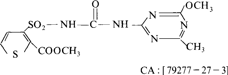 | 释义 | 噻磺隆thifensulfuron-methyl内吸传导型选择性磺酰脲类除草剂。又名阔叶散,商品名Har-monv。化学结构式: