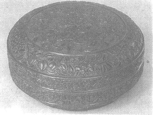 | 释义 | “大明宣德年制”剔彩林檎双鹂图捧盒明。高19.8厘米,口径44厘米。北京故宫博物院藏。圆形,溜肩,子母口。自下而上髹红、黄、绿、红、黑、黄、绿、黑、黄、红、黄、绿、红13层漆后,遍刻纹饰。盒壁和盖面边沿雕茶花、牡丹、栀子花、菊花、石榴、桃子、樱桃等近十种缠枝花果。盖面中心圆形开光内的红色锦纹地上,刻饰一果实累累,枝繁叶茂的林檎(即沙果),两只栖枝相对而啼的黄鹂,一翩跹飞舞的蝴蝶,一悄然而至的蜻蜓。开光边缘处有描金长方形框,内刻填金“大明宣德年制”6字款。此盒刀法娴熟圆润,纹饰写实逼真,生意盎然,色彩绚丽多变,斑驳陆离,堪称剔彩器中的佼佼者。剔彩见“剔彩百子晬盘”条目。