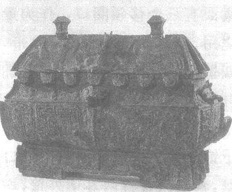 | 释义 | “妇好”铜偶方彝商。古代盛酒器。通高60厘米,长88.2厘米,宽17.5厘米。重71公斤。1976年河南省安阳市殷墟妇好墓出土。北京中国历史博物馆藏。此器身近长方形,有盖,似一对方彝并为一体。器盖为四阿屋顶式,有正脊、重脊,上有两钮,钮帽亦为四阿式。器口前后探出硬挑式梁头各七枚,前沿为大半圆形,后沿为尖形,腹两侧靠下有附耳一对。平底,圈足。自顶至足,有六道扉陵,盖饰饕餮纹,两侧加饰鸟纹。口沿下为鸟纹,中间有兽首。腹饰饕餮纹,圈足饰夔纹。腹部两面均有粗织物痕迹。器底中部内壁有铭文“妇好”二字,字体古朴,结构巧妙,为金文中所罕见。此器庞伟典重,造型奇特,纹饰繁缛,在妇好墓青铜器中独树一帜。当为妇好生前盛酒之器。其形制部分模仿当时殿堂建筑,堪称罕见的瑰宝。