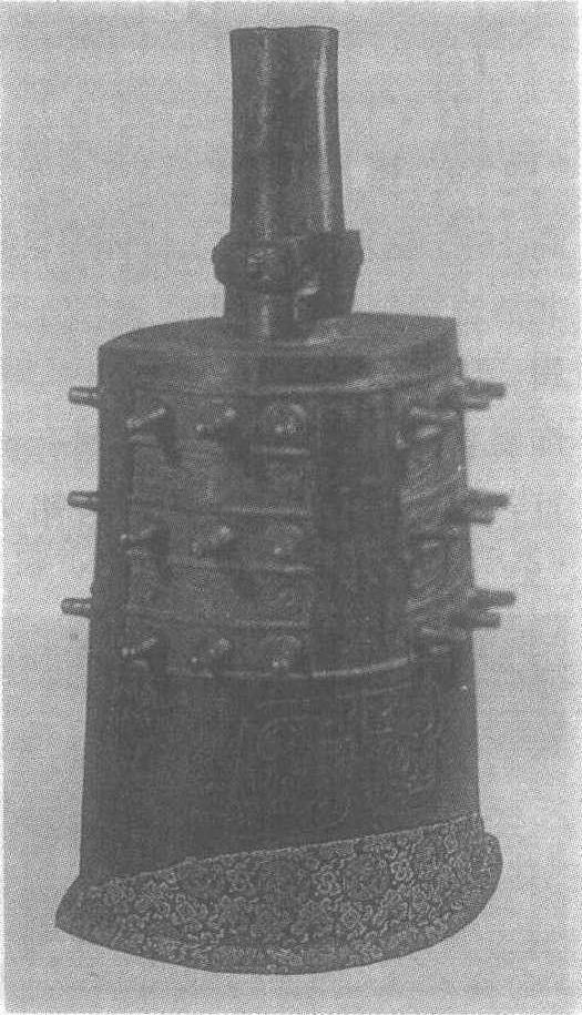 | 释义 | “宗周”铜钟西周。古代祭祀、宴飨时用的乐器。通高65.6厘米,舞宽30厘米,两铣距35.2厘米。台北故宫博物院藏。钟是由铙或铃发展而来,有甬钟、钮钟、镈钟之分。钟在使用时以大小相次成组悬挂,称之为编钟。此为甬钟。圆柱形甬下端的干鼓出如带,正面有方形环可悬挂于筍虚(钟架)。干与舞均饰窃曲纹,篆间饰乳钉,前后各饰六排,每排三乳,乳间饰双头兽纹,鼓上饰象纹。钲间有铭文4行,鼓左有铭文8行,背面鼓右有铭文5行,共122字。