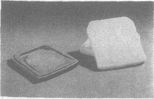 | 释义 | “康熙年制”青玉盒石砚清。长6.8厘米,宽6厘米,厚1.2厘米。北京故宫博物院藏。此器由石砚、盒盖和底三部分组成。石砚用东北松花江流域的松花石制成,色碧绿。长方形,砚堂斜浅凹呈铲形,上有凤字形深凹砚池,边沿刻有精细的水云纹;背面饰古钟形纹,中部阴刻隶书“康熙年制”四字;盒盖和底由新疆和田青玉琢制,作长方形,色青白,盖周浅浮雕蟠螭纹,中部阳文篆书“温而润静而洁不反不侧以宣翰墨”十四字,末署“子昂”篆字款,盖内饰凸起荷叶纹,上阴刻蝌蚪形蛙。盒底中部阴刻篆文<永宝>,及阳文隶书<精赏>连圆珠方印。