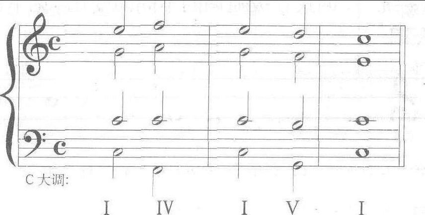 四部和声指古典传统和声的基本结构形式。4个声部能完全地、明确地表现和声功能体系及进行规律,即表现以三和弦和七和弦为主的进行,而多于4个声部往往是四个声部中某一声部的重复,因此,和声学科的训练主要是通过四部和声。