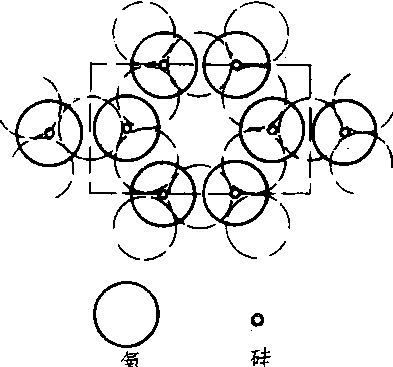 | 释义 | 四面体片tetrahedral sheet又称硅氧片。一个平面上的四面体,底部三个氧分别与相邻的四面体共用,在二维平面上联结和延展。用n[Si4O10]4表示。四面体片底面和顶面的氧排列成近似六方环的网,硅位于顶面和底面氧之间的孔隙中。顶面氧互不相连,并带多余负电荷,能与其他阳离子结合而形成各种层状硅酸盐矿物(见“硅氧四面体”)。