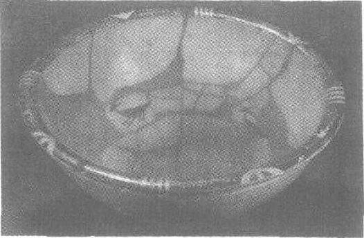 | 释义 | 四鹿纹彩陶盆新石器时代仰韶文化半坡类型。高18厘米,口径43.3厘米。1955年陕西省西安市半坡村出土。北京中国历史博物馆藏。陶盆为细泥红陶所制,形制为卷唇、弧形腹、平底,线条活泼流畅,是半坡类型中常见的盆式。盆外壁较粗,内壁细腻光滑,闪柔光,唇沿上饰黑彩,以白色“↑”和“||||”符号分成8组。盆内用黑彩绘四只奔鹿。画笔简练写意,线条整洁有力,具有很强的装饰性。半坡彩陶图案中多出现鱼、鹿等纹样,这是当时人们对赖以生存的渔猎生活的形象反映。此件实物出于瓮棺口部,盆底的一孔值得探究,据判断可能具有宗教色彩。陕西西安半坡博物馆有与之类似的藏品。仰韶文化见“小口尖底红陶瓶”条目。