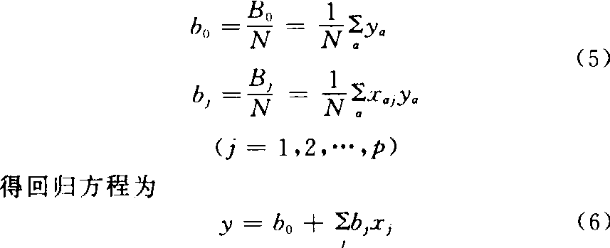 其中各项因素均经过线性变换为-1及1两个水平编码值,除常数项的系数为1外,其余各列均符合正交条件,所以参数β的最小二乘估计b可简化为