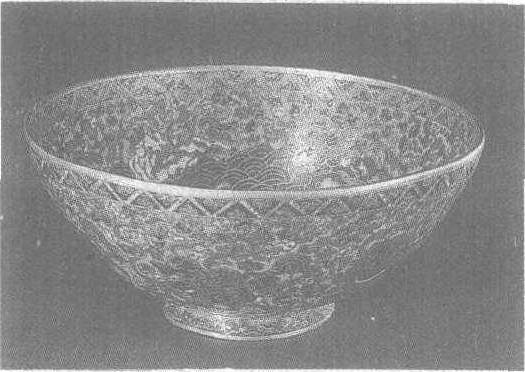 | 释义 | “景泰年制”掐丝珐琅海马纹大碗明。高10厘米,口径23厘米。北京故宫博物院藏。碗为铜胎镀金。圆形,直口,圈足。碗内外纹饰相同。内底以镀金铜单粗线条开圆光,饰折枝牡丹一支,开光外圈围莲花一周。壁下部饰海水江牙图案,内有黄、白、红、深蓝、浅黄、墨绿色海马各一只。口沿饰三角装花锦纹。通体以浅蓝釉为地。足内镀金,中心刻阴文单直行“景泰年制”楷书款。