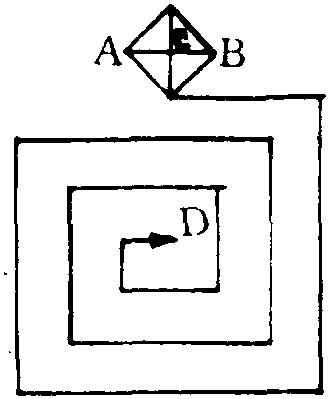| 释义 | 回纹棋取其形似汉字“回”而名之。棋格如图:3人对弈(或2人对弈)。布子在A、B、C点。走子以猜手指中数为凭。A用一、四、七数,B用二、五、八数,C用三、六、九数。同时出指,指数之和中了谁的数,即可向前走一步。前方子被后方子追上,前方子被罚停一步。最先到达D点者为胜。此棋对训练儿童识数的概念、加减法的计算很有益处。