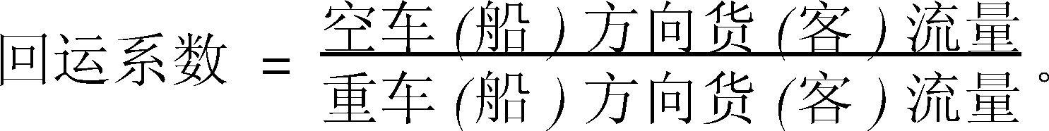 | 释义 | 回运系数coefficient of return traffic又称“回程系数”。反映运输在方向上不均衡状况的指标。同一运输线路上空车(船)方向的货(客)流量与重车(船)方向的货(客)流量之比。计算公式为: