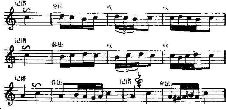 | 释义 | 回音Huiyin装饰音的一种。本音与上下相邻的二度音依次交替出现,形成四个或五个音组成的旋律型称为回音。回音可分为顺回音和逆回音两类。用标记∽表示顺回音,演奏时从上方二度音开始围着本音回绕;逆回音用标记